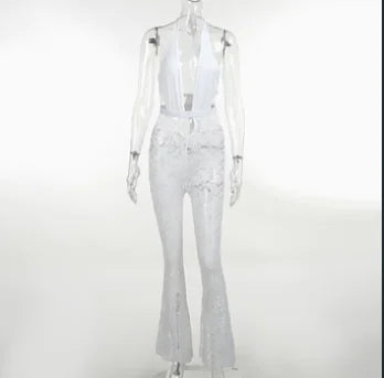 Turn heads with this stunning slim-fit lace jumpsuit, featuring a deep V-neckline and hollow-out details for a bold yet elegant look. The delicate lace fabric adds a touch of femininity, making it perfect for evening parties, special occasions, or date nights. Designed for a flattering fit, this jumpsuit pairs effortlessly with heels and statement accessories for a glamorous and confident look.